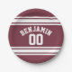 Maroon und White Jersey Stripes Individuelle Name Pappteller