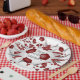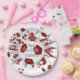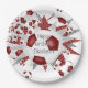 Diese niedlichen Teller zum Thema Fußball sind mit einer "Explosion" von Maronen- und Weißfußbällen und Sternen im Stil von Maroon & Gray Comic ausgestattet - personalisieren Sie mit Ihrer Geburtstagsbotschaft - von katz_d_zynes