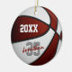This sporty basketball ornament for boys or girls feys a basketball with alternating maroon and white recolored panels - personalize the front and back of ornament with year and player's name in an "autograph" machen Uverlying the athlete's jersey number - by katz_d_zynes