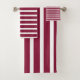 Klassisches Badetuch-Set mit Cabana-Streifen in Maroon ( #8A1538) und weiß . Personalisieren Sie es jetzt mit einem Namen. Sie können auch ein Monogramm /logo etc. hinzufügen. Design von Alma Wad .