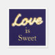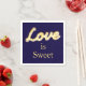 Liebe ist süß, geschrieben in marquee Lichter auf einem dunkelblauen Hintergrund gibt dieser Serviette Vintagen Funkeln und Glamour. Es macht eine schöne Ergänzung zum Nachtisch. Scrollen Sie nach unten, um die komplette Hochzeitskollektion zu sehen. Falls Sie zusätzliche Artikel für Ihre Veranstaltung benötigen, kontaktieren Sie uns bitte unter prettyfancyinvites@gmail.com mit Ihrer Anfrage.