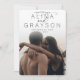 Eine einfache und moderne Hochzeit bewahrt das Datumsdesign mit einem vollblutenden senkrechten Foto, mit Ihren Namen an der Spitze moderner Schriften, verbunden mit einem geblüht Drehbuch "und". Personalisieren Sie mit Ihrem Hochzeitstag und Ort, und fügen Sie zusätzliche Details auf der Rückseite, wie Ihre Hochzeitswebsite. Aufgrund der Platzierung der Text- und Designelemente empfiehlt sich dieser Stil für vertikale Foto mit viel weißem oder hellen Platz oben.