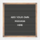 Fügen Sie Ihren eigenen Text hinzu, um benutzerdefinierte Aufkleber zu erstellen. Diese quadratischen Aufkleber zeichnen sich durch die Darstellung eines Buchstabenstils im klassischen schwarzen Set in einem braunen Holzrahmen aus, in dem Ihre Nachricht in weißer Schrift dargestellt wird.