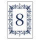 Die modernen marokkanischen inspirierten Tischnummern-Karten haben eine geometrische Grenze in Marineblau und Weiß, die Ihre Tischnummer umgibt. Design wiederholt sich auf der Rückseite. Koordiniert mit unserer Hochzeitssuite in Marrakesch in Navy.