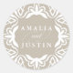 Siegel Sie Ihre Hochzeitseinladung Kuverts, Favoriten und mehr mit unseren eleganten marokkanischen inspirierten Aufkleber in Marine und Weiß. Das runde Design verbindet die Namen mit dem dekorativen Skript und ist von einem geometrischen Rahmen in weiß auf einem sandfarbenen beigen Hintergrund umgeben. Koordiniert mit unserer Hochzeitskollektion in Leinengrüige in Marrakesch.