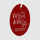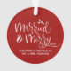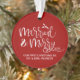 This elegant round red acrylic ornament features a festive white script design on both sides, reading “Married & Merry” with space to add your wedding year and names. It’s the perfect way to commemorate your first Christmas as Mr. & Mrs. and add a romantic touch to your holiday tree.