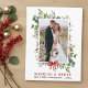 Elegant Watercolor Winter Greenery Married & Merry Wedding Photo Newlywed Holiday Postcard includes eucalyptus leaves and red holly berries. Red Bow Ribbon.