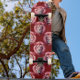 Süßes rosa Löwenkopf-Nahtlos-Wiederholungsmuster-Design auf rotem Hintergrund