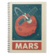 Eine Retro-Abbildung von Mars mit einem Satelliten.