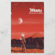 Mars Science Fiction Vintage Reiseplakat Weltraumkunst eines Astronauten auf der Marsoberfläche.