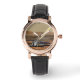 Uhr, Klassische Damenuhr mit schwarzen Lederarmband