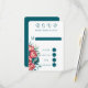 Ein Aquarellbild eines hellen Peronenbouquets in marineblau und orange. Das Bouquet besteht aus Pfannkuchen mit großen, runden Blüten und tiefgrünen Blätter. Der Hintergrund ist marineblau. Entsprechende Einladungen und Hochzeitslieferungen sind in dieser Kollektion erhältlich.