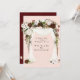 Das Design zeichnet sich durch ein farbiges, blumengeschmücktes Element in Marsala- und Rosa-Farbtönen aus, das eine hellrosa Textur aus Kraftpapier mit weißem Kronenoberteil und Kalligraphie-Schrift oder Schriftzeichen überträgt. Ideal für Ihre Hochzeitsfeiern!