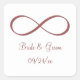 Marsala Unendlichkeitssymbol anpassbar Save the Date Design für Ihre Hochzeit. Ein individualisierbarer Aufkleber mit hübschem Rot aus rustikalem Wein vor weißem Hintergrund.