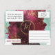 Moderne, elegante und schicke Marsala rot und gewaschen aquamarine künstlerische Aquarell mit Imitaten bedruckte Goldspritzen, Rett-the-Date Hochzeit Postkarten. Dieses klassische und raffinierte Design ist perfekt für das trendige und stilvolle Ehepaar. Personalisieren Sie Ihre eigene Nachricht auf der Vorderseite sowie ein individuelles Monogramm auf der Rückseite. Das gesamte Foto-Druckdesign.