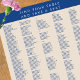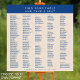 Das Marseille Bleu 300 Gästekarten-Plakat ist einfach nach Ihren Wünschen zu gestalten und bietet Platz für bis zu 300 Gäste. Sie können Ihr eigenes Format wählen, vom alphabetischen bis zum Tischchen. Dieses minimalistische Hochzeitstisch-Plakatdesign verleiht sich gut zu ultramodernen Hochzeitsthemen sowie lässigeren Hochzeiten und Veranstaltungen, vom tiefblau-marineblau Kopfende oben, der zu fünf dunkelblauen Textsäulen auf dem Hintergrund führt. Jede der 5 Spalten hat jeweils 60 Zeilen, sodass, wenn Sie wählen, Ihre Tabelle Plan Diagramm alphabetisch mit absolut keine Zeilenumbrüche zu erstellen, können Sie 300 Hochzeitsgäste passen. Wenn Sie Leerzeichen zwischen Buchstabengruppen mit oder ohne Kopfzeilen bevorzugen, wird dies natürlich die Anzahl der Gäste verringern. Mit dieser Auswahl können Sie Ihre eigene Hochzeitskarte gestalten, die Empfang-Tabelle nach Tischnummern für Tische mit Platz für 6, 8 oder 12 Personen sowie für die typischen 10 Personen organisieren und sogar Tischgrößen mischen, wenn dies Ihr Veranstaltungsort bietet. Die klassische Farbpalette von marineblauer Blau mit einem weichen Ekru ist eine leichte Wahl für alle Jahreszeiten, von Herbst über Winter bis Frühling und Sommer Hochzeiten. Dieses maßgeschneiderte Hochzeitsstempelposter von Marseille Bleu eignet sich für Ihre 300 Personen Hochzeitsfeier oder andere Veranstaltungen, sodass Ihre Gäste problemlos Platz nehmen können.