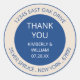 Diese klassischen runden Hochzeitsaufkleber können für viele Aspekte Ihrer Hochzeitsfeier individuell angepasst werden. Die farbenfrohe Marseille Bleu-Farbpalette in leuchtend marineblau gepaart mit Ekru und Weiß fügt sich harmonisch in modernere und lässigere Hochzeitsthemen und in alle Jahreszeiten ein. Der äußerliche, dunkelblaue Text auf ecru kann mit Ihrer Adresse personalisiert werden, sodass Sie diese runden Hochzeitsaufkleber als Umschlag Aufkleber verwenden können, die sich als Rücksendeadressen-Aufkleber verdoppeln, oder Sie können den Text zu einer persönlichen Danksagung, oben und unten bearbeiten. Der Haupttext in Weiß auf Blau kann so einfach sein wie Ihre Namen und Hochzeitstag oder fügen Sie eine zusätzliche Danksagung, wenn Sie bevorzugen und in so vielen Arten mit Ihren Gastgeschenke Hochzeiten verwendet werden. Personalisierte Hochzeitsaufkleber sind so einfach wie 1-2-3 mit diesem leicht anpassbaren Design.