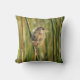 A throw pillow with a photograph of a marsh wren (Cistothorus palustris) on the front, and facts about the bird on the back.