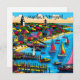 Farbenfrohe abstrakte Ai-Kunst, die einen Martha's Vineyard Strand mit Segelbooten und Leuchttürmen darstellt. Niedliches Sake-Souvenir für jeden, der Martha's Vineyard Lieben.
