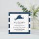 Save the Date Hochzeitsankündigung für Ihre Weinbergshochzeit in Martha. Navy Blue Stripes und Navy Blue Map von Martha's Vineyard mit beweglichem Gold-Herz über Oaks Bluff Martha's Weinberg. Sie können klicken, um das Herz zu bearbeiten und bei Bedarf an einem anderen Ort zu bewegen. Wenn Sie Änderungen am Design gewollt haben, senden Sie bitte eine E-Mail an paula@labellarue.com BEVOR Sie eine Bestellung aufgeben, damit ein neues Design für Sie erstellt werden kann.
