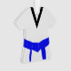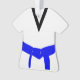 Personalisieren Sie das Leichtblauen Gürtel Uniform Akrylhüpfen Ornament mit dem Namen Ihres Kampfkünstlers und Jahr der Leistung, um an einen hellblauen Gürtel Rank Werbeaktion Test oder Prüfung in Karate oder taekwondo zu erinnern. Dieser einzigartige Weihnachtsschmuck ist in Form eines weißen Shirts, Dobok oder Gi mit schwarzem Kragen und blauem Gürtel rund um die Taille.