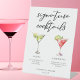 Dieses elegante Cocktails-Podest mit schlichter schwarzer Typografie über 2 Drinks und deren Zutaten für Ihre Hochzeitsfeier. Ein niedlicher Martini und ein kosmopolitischer zeichn fügen Ihrem Bar einen coolen Flair hinzu. Füllen Sie bitte die Namen des Paares und das Datum für seinen Empfang aus.