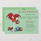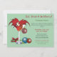 Ein kleiner, roter Drache sitzt in einem Martini-Glas mit grünen Oliven und Weihnachtsdekor