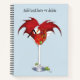 Ein niedlicher, kleiner, roter Drache schnippelt eine grüne Oliven in einem Martini-Glas