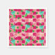 Pink Checkerboard Martini & Olive Coaster. This playful design features a hand-painted aesthetic with a vibrant hot pink, red, and blush checkerboard grid background. Scattered across the pattern are illustrated mint green martini coupes and savory green olives, accompanied by the festive Italian toast "Cin! Cin!" (Cheers!) in a white script font.