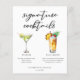 Dieses elegante Cocktails-Menü Papier Blatt schlicht schwarze Typografie über 2 Drinks und ihre Zutaten für Ihre Hochzeit Bar. Ein niedlicher Martini und Piña Colada zeichnend fügen Ihrem Bar einen coolen Flair hinzu. Füllen Sie bitte die Namen des Paares und das Datum für seinen Empfang aus.