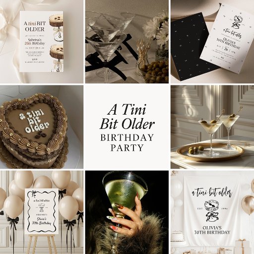 Mit dieser modernen "A Tini Bit Older"-Martini zum Geburtstag zum Thema Eleganz und Stil! Mit einem handgezeichnet Martini-Glas, das mit einem schicken Coquette-Bogen, Mini-Bows und spielerischen Polka-Punkten geschmückt ist, verbindet dieses Design zeitlose Eleganz perfekt mit einer kühlen, unterhaltsamen Drehung. Die schlanke Typografie und das minimalistische Layout machen es zu einer idealen Wahl für Meilenstein-Geburtstage wie 21., 30., 40. oder jedes toastenswerte Alter. Passen Sie es mit Ihren Party-Details an und heben Sie ein Glas auf ein weiteres phantastisches Jahr mit dieser Geburtstagseinladung!