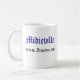Eine Tasse, die den blauen Zauberer Marvin und das Midieville Logo kennzeichnet