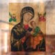 MUTTER MARIA UND BABY JESUS FENSTER CLING. SCHÖN. DER BLICK AUF EIN GLAS-FENSTER.