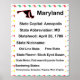 Ein lustiges Plakat über den US-Staat von Maryland. Die Fakten beinhalten Hauptstadt von Staat, Abkürzung von Staat, Spitzname von Staat, Eigenstaatlichkeit, Blume von Staat, Motto von Staat und angrenzende Staaten.