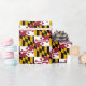 Das schwarze und goldene Design auf der Flagge ist das Wappen der Calvert Linie. Es wurde George Calvert als Belohnung für seine Stürmung einer Befestigung während einer Schlacht gewährt (die vertikalen Balken nähern sich den Gittern der Palisade).[Zitat erforderlich] Das rote und weiße Design ist das Wappen der Crossland Linie, der Familie von Lord Baltimore's Mutter, und weist eine Kreuzbesetzung mit den roten und weißen Seiten des abwechselnden Kreuzes auf. Da George Calverts Mutter eine Erbin war, war er berechtigt, beide Wappen in seinem Banner zu benutzen. Es ist eine von nur vier US-Staatsflaggen, die nicht die Farbe blau (die anderen drei sind Alabama, Kalifornien und New Mexico). Es ist auch die einzige US-Staatsflagge, die direkt auf Englisch heraldry basiert, obwohl die Flagge von Washington, D.C. eine Veränderung des Wappens der Familie George Washington ist.