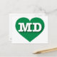 Auf dieser Postkarte befindet sich ein lebendiges grünes Herz, das die fett-, weiß-, Großbuchstaben MD, die offizielle Abkürzung von Maryland, dem alten Staat der Linie, enthält. Die Rückseite der Postkarte ist leer und wartet auf Ihren personalisierten Text oder Ihre handgeschriebenen Gefühle.