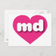 Diese Postkarte zeigt ein lebendiges, heiß rosa Herz, das die fett gerundeten, weißen Kleinbuchstaben md enthält, eine spielerische Version der Abkürzung für Maryland, den alten Staat der Linie.