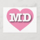 Auf dieser Postkarte befindet sich ein pulsierendes rosa Herz, das die fett-, weiß-, Großbuchstaben MD, die offizielle Abkürzung von Maryland, dem alten Staat der Linie, enthält. Die Rückseite der Postkarte ist leer und wartet auf Ihre handgeschriebenen Stimmungen oder Ihren personalisierten Text.