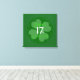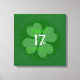 Ein großes grünes Kleeblatt mit "März 17. St. Paddy's Day". Klicken Sie auf "Anpassen", um die Hintergrundfarbe zu ändern.