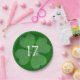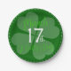 Ein großes grünes Kleeblatt mit "März 17. St. Paddy's Day".