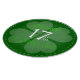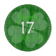 Ein großes grünes Kleeblatt mit "März 17. St. Paddy's Day". Klicken Sie auf "Anpassen", um die Hintergrundfarbe zu ändern.