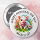 Niedliches zauberhaftes Schwein in einem Stück Blume. Funny Holiday Knöpfe. März 1 ist Nationaler Schweinetag.