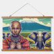 Genießen Sie die majestätische Schönheit Afrikas mit unserem Masai Wall Hanging und zeigen Sie eine atemberaubende Szene eines Masai-Kriegers stehend hoch neben einem herrlichen Elefanten, mit dem ikonischen Berg Kilimanjaro steigt im Hintergrund. Dieser atemberaubende Wandteppich vereint das Wesen der afrikanischen Savanne und verbindet das kulturelle Erbe mit der Pracht der Natur. Diese Wandaufhängung ist aus hochwertigen Stoffen gefertigt, um eine lange Lebensdauer und lebendige Farben zu gewährleisten. Sie ist perfekt für alle, die sowohl die reiche Tradition der Masai-Bevölkerung als auch die beeindruckend inspirierend Landschaften Afrikas schätzen. Ob im Wohnzimmer, im Schlafzimmer oder im Büro, es verleiht jedem Raum eine Touch exotischer Eleganz und Abenteuer