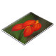 DoppelMasdevallia Ignea Orchideen gerahmt durch das üppige Grün des umgebenden Gartens.