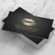 Makeup Artist Modern Gold Lips Elegante Black Business Card.