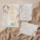 This graceful design features a soft watercolor illustration of the beloved green dome and minaret, framed by delicate dusky-pink poppies and a graceful gold arch motif. The composition creates a romantic and spiritual atmosphere—perfect for setting the tone for a Nikah celebration rooted in faith, beauty, and joy.