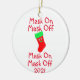 Maske auf die Maske Weihnachtsschmuck. Dieses Weihnachtsschmuck ist perfekt für 2021. Es ist ein ist zum Kotzen Ornament aus dem Jahr 2021. Eines der lustigsten Weihnachtsschmuck der Covid-19. Sonnige pandemische Weihnachtsschmuck.