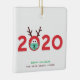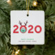 Das perfekte Geschenk für die Ferien 2020, dieses maßgeschneiderte Ornament mit einer maßgeschneiderten Illustration eines maskierten Rentiers, eingebettet in das Jahr 2020, sagt alles. Ein kleiner Spaß, um die Stimmung in dieser Ferienzeit zu erleichtern. Rot, Grün und Braun. Gruß und Namen am unteren Rand sind anpassbar und optional.