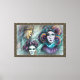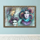 Stellen Sie sich vor, Sie spazieren durch die gepflasterten Straßen von Venedig, Italien, wenn Sie auf einen Laden mit Karnevalsmasken kommen. Man schaut in das Glas und versucht, all die wunderschönen Stoffe, Perlen, Federn und vieles mehr einzufangen. Man atmet tief ein und tritt hinein. Die Farbtöne aquamarin blau grün, gold, braun, bordeauxrot und lila sind auf den Masken der Kunstdruckerei Venedig Leinwand zu sehen.