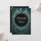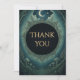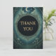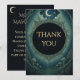 Danken Sie mit gotischer Eleganz. Diese Dankeskarte zur Maskerade unter Mondlicht enthält dunkle schwarze Töne, goldene Texte und himmlische Details – perfekt für Halloween-Partys und mondbeschienene Veranstaltungen.